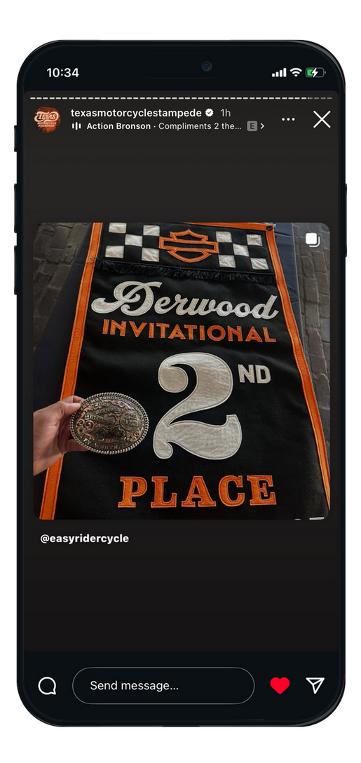 We were invited to create custom event & award banners for the inaugural 2025 Texas Motorcycle Stampede – proudly sponsored by Harley-Davidson. Held at the historic Fort Worth Stockyards, the event celebrated and honored some of the finest bike builders in the nation. Our collaboration with event founder, Luther Cory Moore of Derwood, was the unexpected highlight – a creative partnership turned friendship.